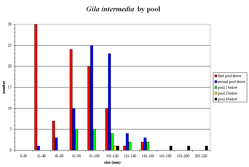 Gila intermedia size classes by pool.