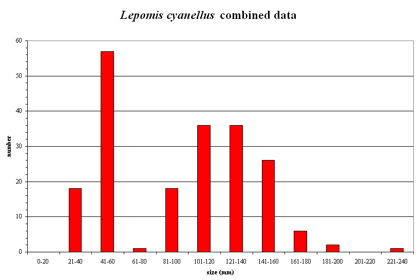 Lepomis cyanellus size classes for all pools combined.